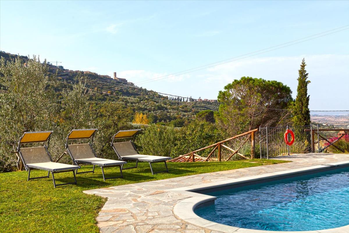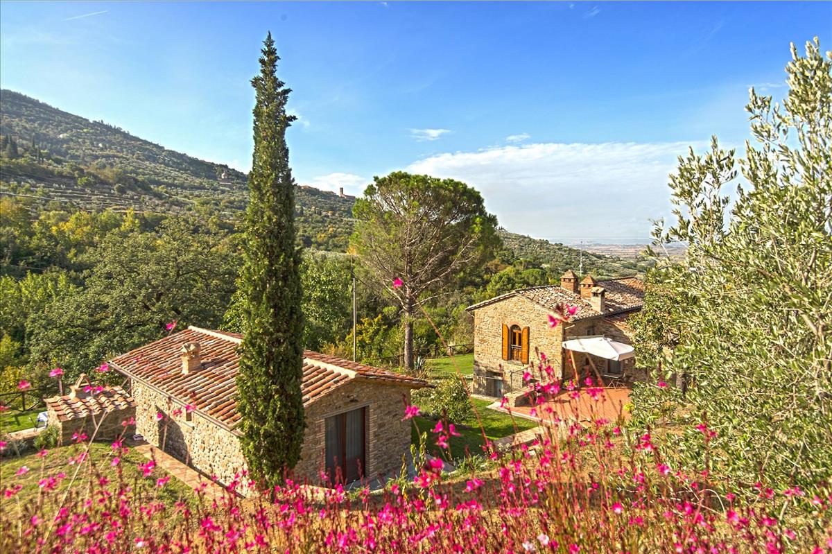 Eingebettet in eine Natur, die Ruhe ausstrahlt, mit dem Bach von Le Celle, der am Haus vorbeifließt, und einem Panorama von Cortona und dem Val di Chiana, entfaltet sich hier die Essenz des Lebens.