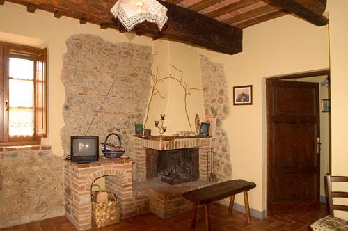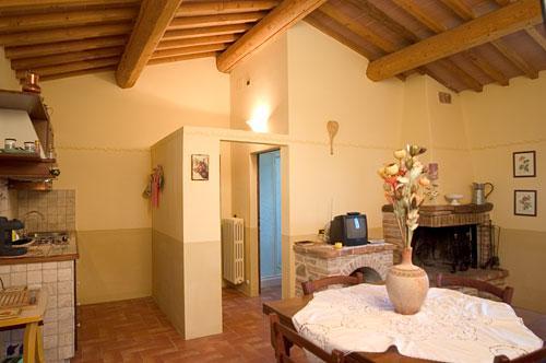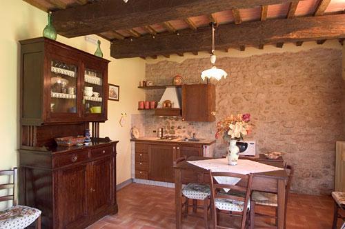 Die Farbe der Innenwände, die sich an die warmen Töne der umbrischen Erde anlehnt und die sich mit dem sichtbar gelassenen Naturstein, der Einrichtung im Stile "Arte povero" und der Aufmerksamkeit, der man jedem Detail und den Teppichen zukommen ließ, abwechselt, machen aus jeder Wohnung ein behagliches Heim, in der sich Ästhetik und Nützlichkeit für einen angenehmen Aufenthalt vereinen.